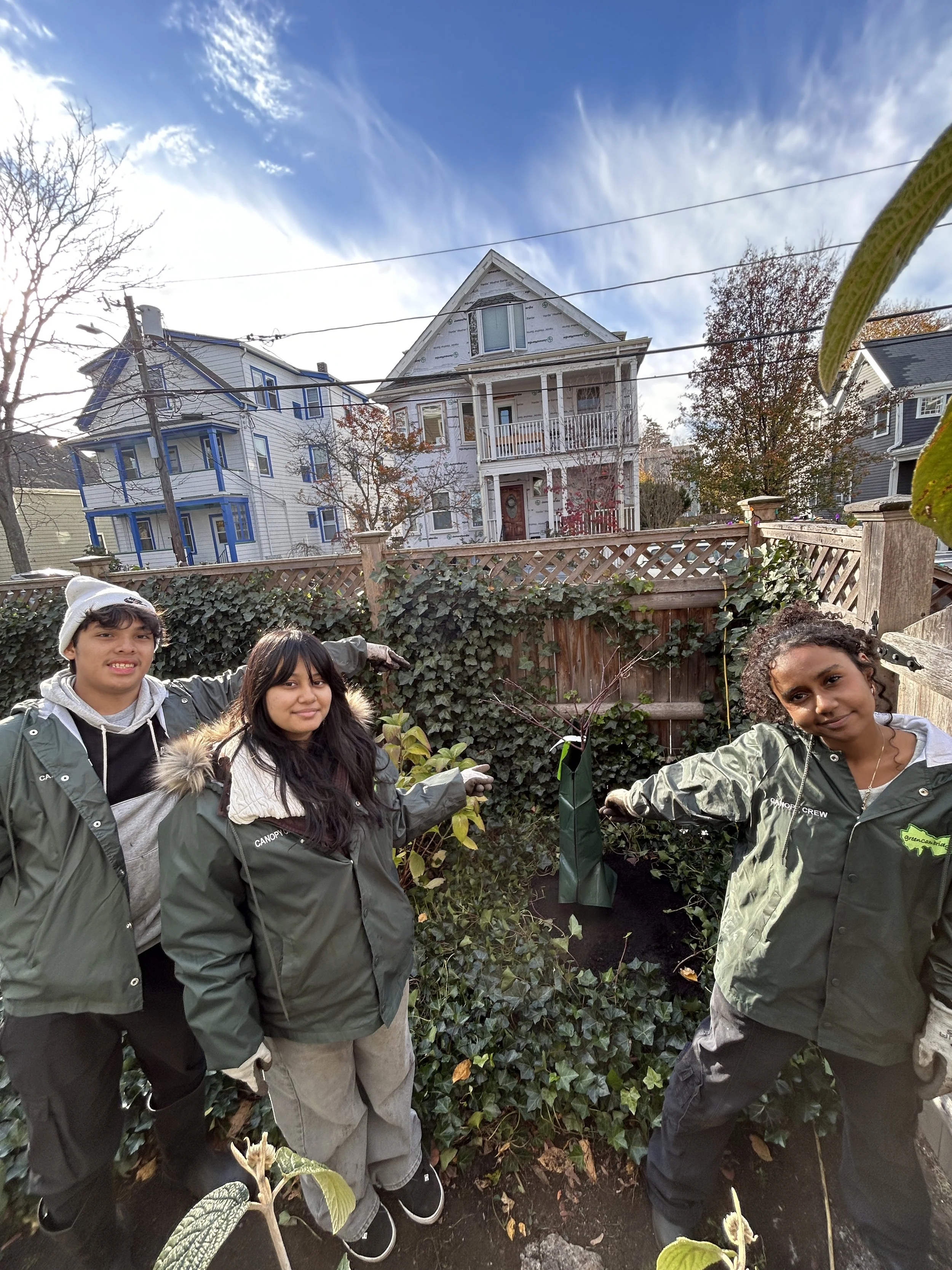 A group of Cambridge high schoolers hired by Green Cambridge to plant trees on private property and become the next generation of tree ambassadors!